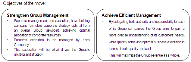 - Adoption of multi-brand strategy and switch to holding company structure