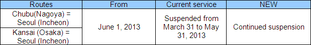 The schedules for the Narita to Seattle and Narita to San Jose routes had not been finalized from June onwards, but these flights will now operate from June 1. The reservations service for these routes will reopen on May 10, 2013 (Friday).