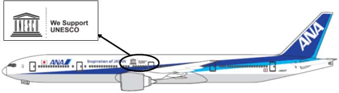 (1)Promoting UNESCO across ANA’s international flight network In order to raise further awareness of UNESCO's brand, ANA will display the UNESCO logo on aircraft flying on international routes across its network, in addition to the commitment: ‘We Support UNESCO’. The symbol and commitment will be applied to aircraft from October 30 onwards, in order to be displayed on flights operating on European and North American routes from November.