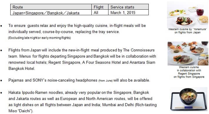*In-flight menus are for March-May 2015 * Services may be different on early morning or late night flights *Services are subject to change