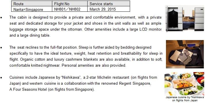 ANA will introduce its highest class of service on the Singapore route, giving passengers the opportunity to enjoy flights in comfort, privacy and luxury.