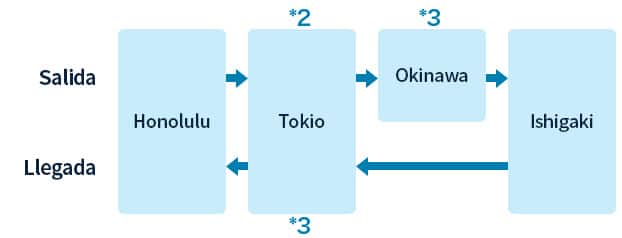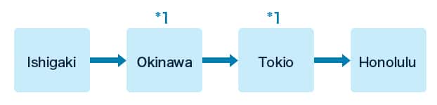 Ishigaki ⇒ Okinawa ⇒ Tokio*1 ⇒ Honolulu