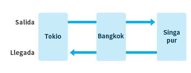 Este itinerario no se puede utilizar porque el viaje de salida pasa otra vez por la primera ciudad del viaje de salida (Tokio) antes de finalizar.