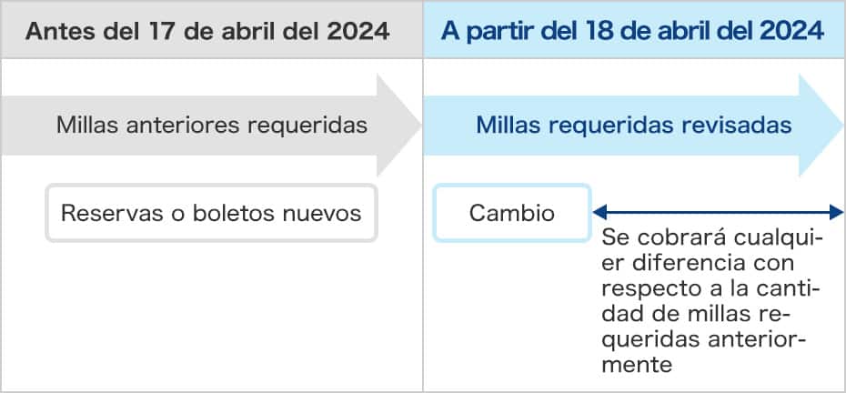 Las millas requeridas revisadas se aplicarán a los boletos de premio de vuelo adquiridos a partir del 18 de abril del 2024, 0:00 a. m. (JST) .