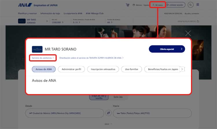 El Centro Super Flyers puede ayudarlo con todo, desde reservas, premios de millas, consultas de servicios y más. Simplemente inicie sesión en la página de información para miembros de ANA Mileage Club (AMC) o llámenos.