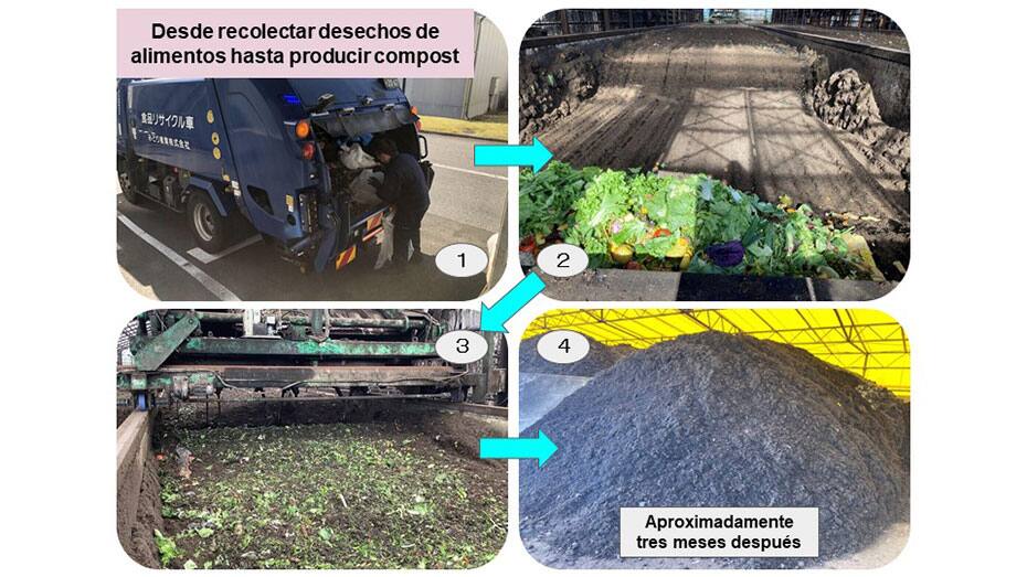 El ANAC genera aproximadamente 248 toneladas de desechos de cocina (equivalentes a aproximadamente el volumen de una piscina de 25 metros) y aproximadamente 28 toneladas de aceite (equivalentes a aproximadamente 14,000 botellas plásticas rellenas de 2 litros) por año (*2). Hemos estado reciclando el 100 % de estos desechos para convertirlos en compost y pienso, pero ahora hemos introducido un sistema de reciclaje que va aún más allá y utiliza verduras cultivadas con compost para las comidas en vuelo.