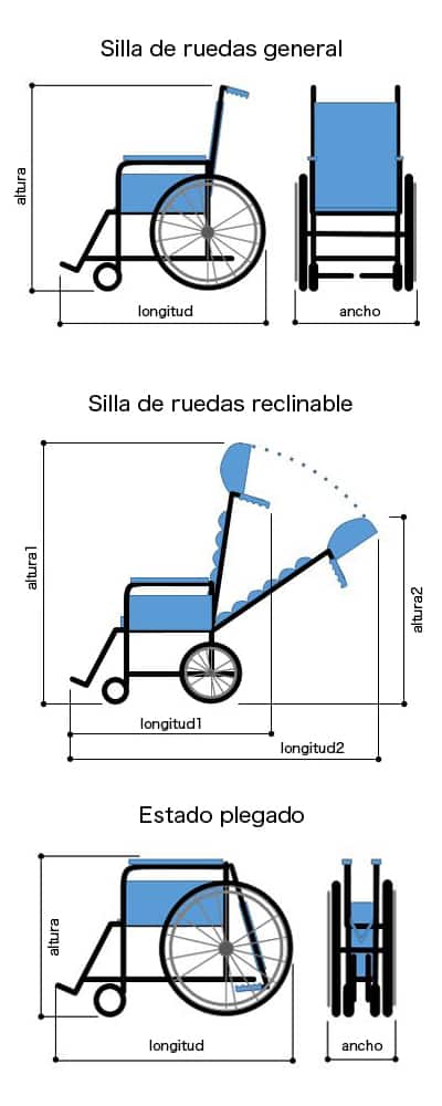 Informe a nuestro personal sobre el tamaño de la silla de ruedas que registrará (profundidad, ancho y altura). Es posible que no se puedan facturar ciertos tipos de sillas de ruedas, ya que los espacios de carga varían según el avión. Podemos aceptar su silla de ruedas si la altura y el tamaño se pueden ajustar quitando o reclinando el reposacabezas o el reposapiés. A continuación, verifique el tamaño del compartimiento de carga según el tipo de avión.