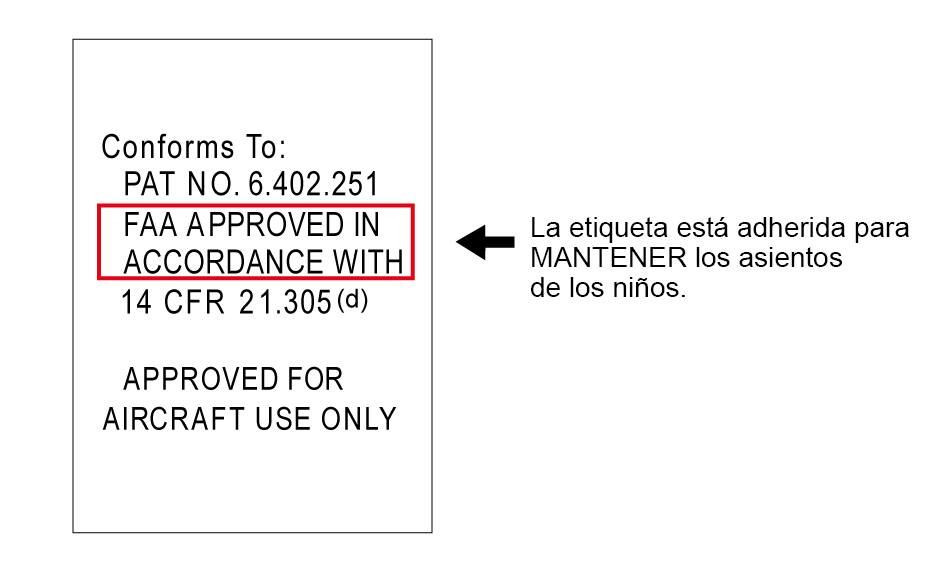 La etiqueta “APROBADO POR LA FFA DE ACUERDO CON” debe estar puesta en los asientos para niños CARES.