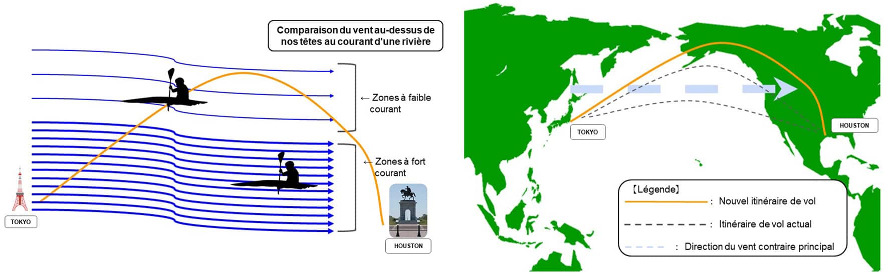 Dans son rôle de gestion des vols quotidiens, M. Kinoshita a remarqué que la durée des vols au départ de Houston et de Mexico vers Tokyo Narita dépassait la durée moyenne des vols.