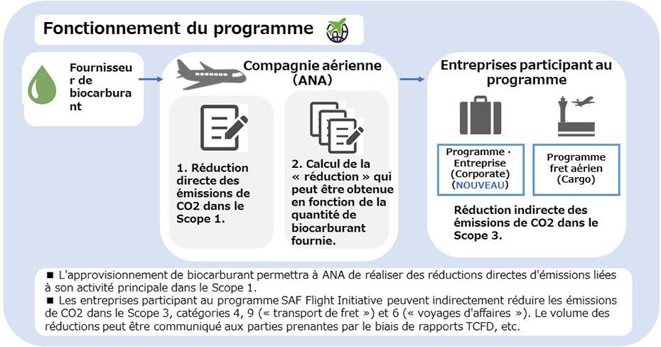 En octobre 2021, ANA a lancé un nouveau programme, « SAF Flight Initiative : For the Next Generation », visant à aider les clients à réduire les émissions de CO₂ dans le transport aérien grâce à l'utilisation de SAF (Sustainable Aviation Fuel, carburant d'aviation durable, ci-après « SAF ») (*1), etc.