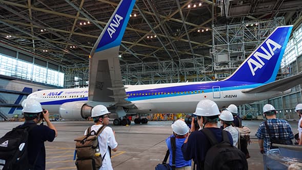 成田空港の格納庫にて、7月1日(土)、2日(日)の二日間にわたり、ボーイング 767 型機を目と鼻の先で見学・撮影できる撮影ツアーを開催しました!