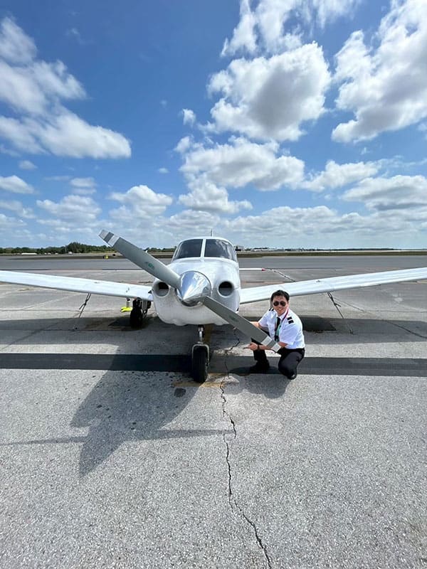 パイロットとして必要な操縦能力を身につけた後、双発機と呼ばれるPiper Seminoleという機材を用いて、片方のエンジンが止まった時や様々な機材故障が起きた時の対応を訓練します。