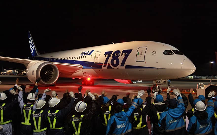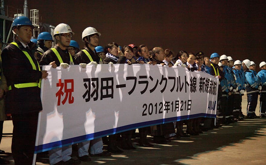2012年1月21日に羽田‐フランクフルト線を開設しました。航続距離はボーイング767-300ER型機を大きく上回り、従来、大型機でなければ運航できなかった長距離路線も飛行可能に。日本から欧州、北米・東海岸への直行便として就航ができるようになりました。