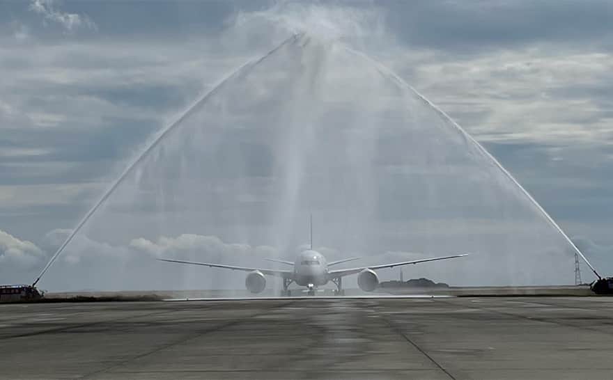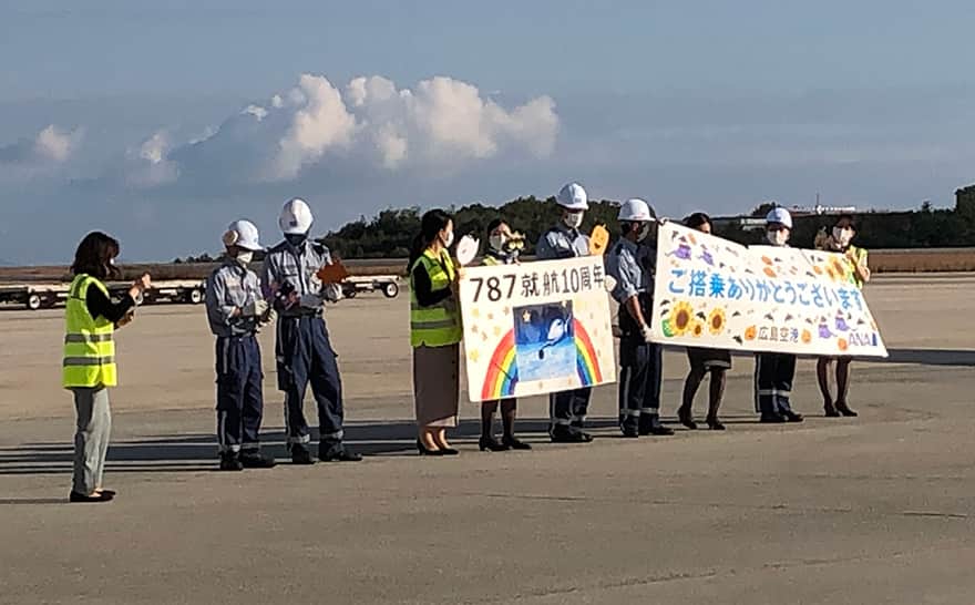 この便は10年前の初便と同じ機材「JA801A」で運航しました。