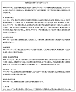 法令を守ることは、企業として存続していくうえで必要不可欠です。ANAグループでは、「法令および法令の趣旨またはその目的となるもの、ならびに法令に基づき発せられる通達等を遵守すること」をコンプライアンスと定義しています。コンプライアンスが会社経営において重要な位置を占めていると認識し、ANAグループの全役職員が守るべき規範として、「ANAグループ行動規範(社会への責任)PDF 新しいウィンドウで開く。外部サイトの場合はアクセシビリティガイドラインに対応していない可能性があります。」を定めています。