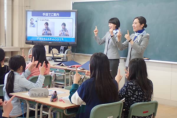 ANAグループのパイロット・客室乗務員・整備士・グランドスタッフ・グランドハンドリングスタッフが講師を務め、仕事の魅力や社員の想いを仕事体験を通し伝えることで、「夢をもつこと」「夢に向かって努力し続けること」の大切さを体感します。