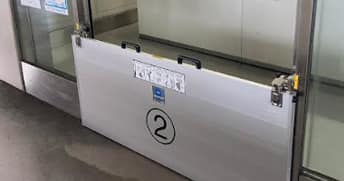 昨今、集中豪雨や台風の巨大化により各地で天災による被害が発生しており、空港内のオペレーションに不可欠なインフラ設備である「通信設備」「電源供給設備」を守るために様々な対策を進めています。浸水被害への対策として、主要空港の中でも水没リスクが高いと想定される5空港(羽田、中部、関西、福岡、沖縄)に対し、最新のハザードマップをもとに止水板の設置や機器類の上部移設などの工事を順次着手し、早期復旧できる環境の整備を進めています。