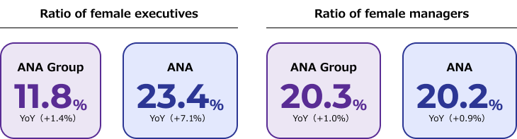 In June 2021, the ANA Group established a medium-term goal for improving the ratio of women in decision-making positions.