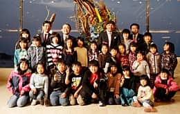 Invitees to the ceremony which was held on March 6, 2013 at the Minami Sanriku Hotel Kanyo included20 children from Minami Sanriku who had participated in a workshop using tsunami debris with Mr. Maeno a year earlier. Each child had colored pieces of wood with his or her own precious memories, and Mr. Maeno used the wood to decorate his whale-shaped objet d'art.