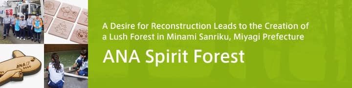 Valuing the bonds built through ANA Hearty Baths, in July 2012 we launched a new project to plant a forest in Minami Sanriku, Miyagi Prefecture, called ANA Spirit Forest. ANA Group employee volunteers work with local residents on tree thinning and other activities to create a lush forest.
