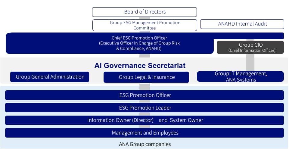 The ANA Group has formulated the “ANA Group AI Principles” and promotes the appropriate utilization of AI under the AI governance system.