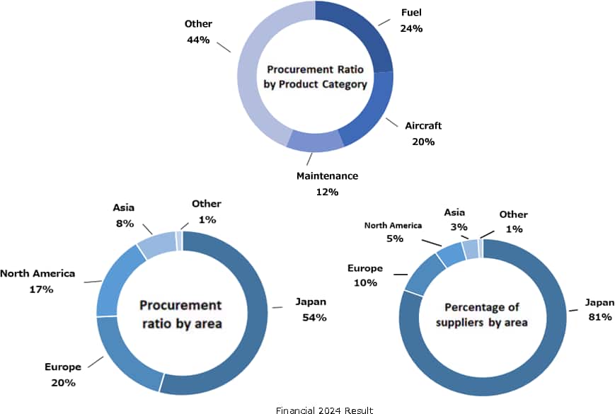 The ANA Group engages in global procurement activities, and our annual procurement expenditure amounts to approximately 1.7 trillion yen.