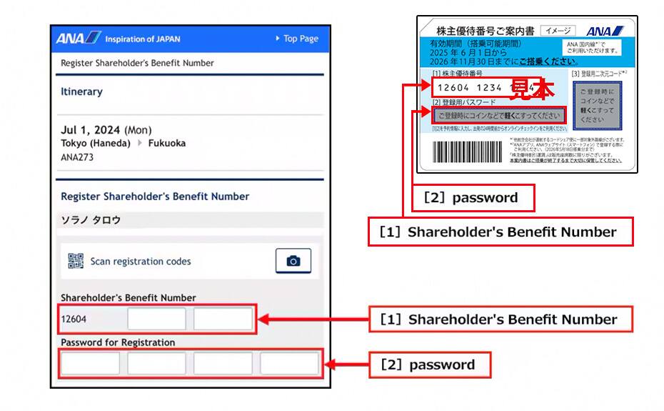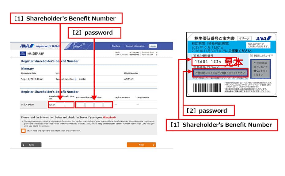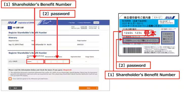 - Your "Shareholder's Benefit Number Notification Card" will not be collected, but please keep it until after you have used the flight.