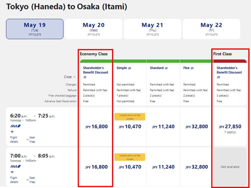 Select "Shareholder's Benefit Discount" of your preferred flight for making a reservation.