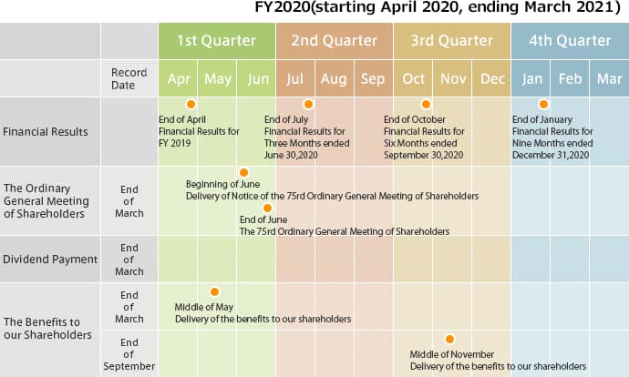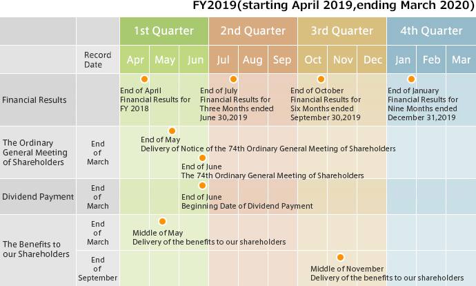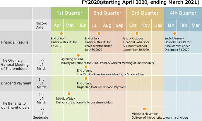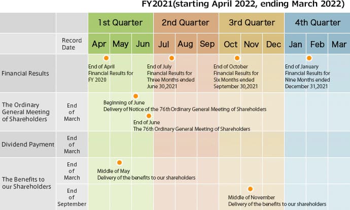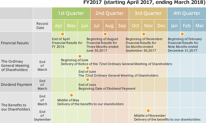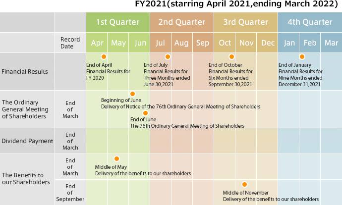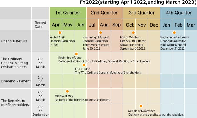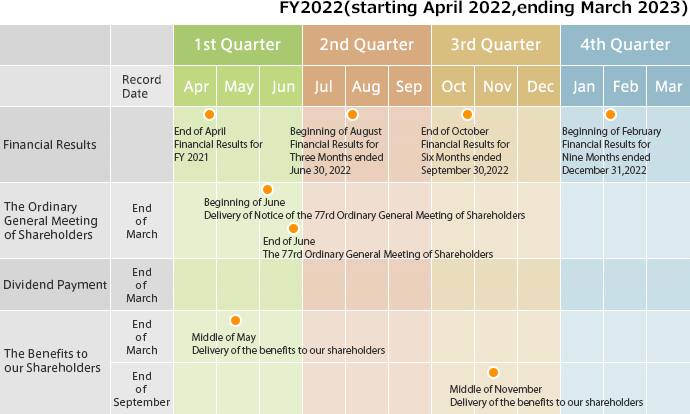 | The Ordinary General Meeting of Shareholders | End of March | Beginning of June Delivery of Notice of the 77rd Ordinary General Meeting of Shareholders End of June The 77rd Ordinary General Meeting of Shareholders |