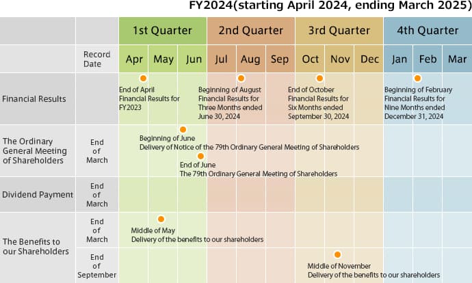 | The Ordinary General Meeting of Shareholders | End of March | Beginning of June Delivery of Notice of the 79th Ordinary General Meeting of Shareholders End of June The 79th Ordinary General Meeting of Shareholders |