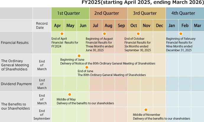 | The Ordinary General Meeting of Shareholders | End of March | Beginning of June Delivery of Notice of the 80th Ordinary General Meeting of Shareholders End of June The 80th Ordinary General Meeting of Shareholders |