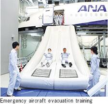 We continue to focus on providing emergency evacuation training, a program initiated in 2012 using a mock-up of an aircraft, and holding ANA's Day, an event held since 2013 in which all ANA Group employees learn about the history of accidents and unsafe events at the ANA Safety Education Center.
