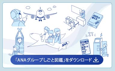 • ANAグループしごと図鑑PDF新しいウィンドウで開く。外部サイトの場合はアクセシビリティガイドラインに対応していない可能性があります。