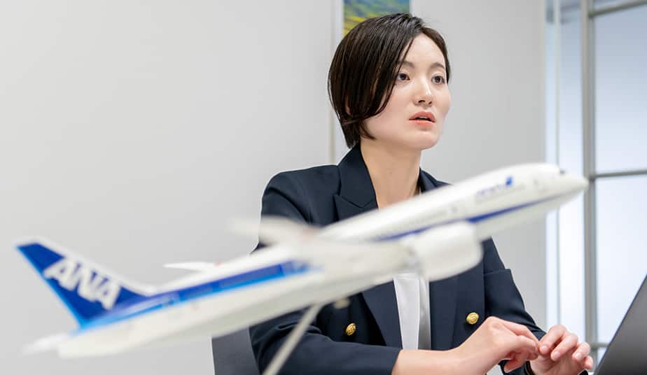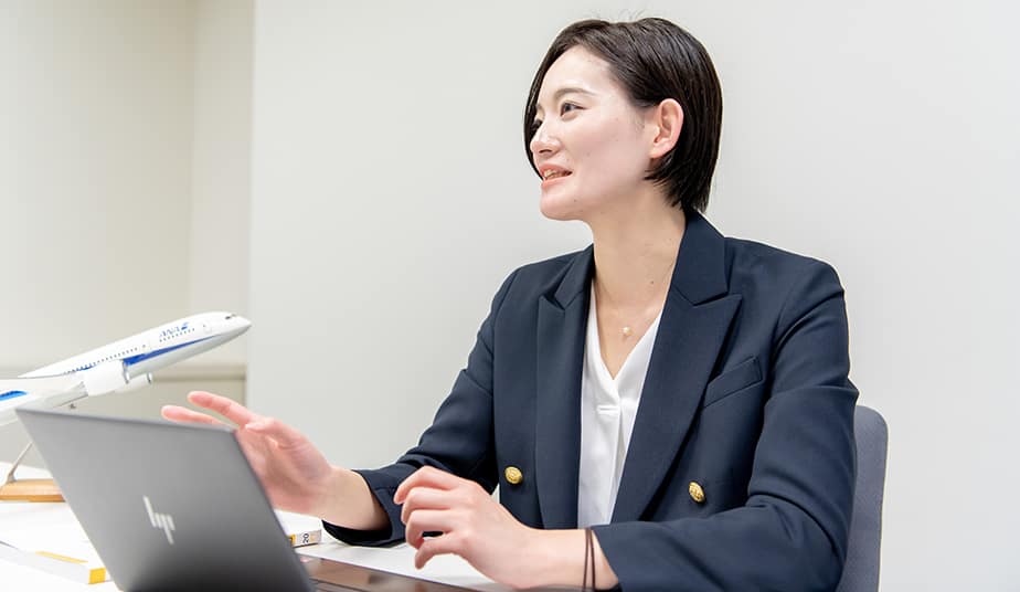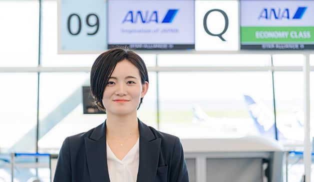 私は子供の頃からずっと飛行機や空が好きで、就職活動においても、ほぼ航空業界を見ていました。バスケットボールを大学までやってきていたことから、ANAの説明会に参加したときに『ANAの仕事はチームワークや連携の取り方などの点でチームスポーツと似ているな』と感じ、経験と感覚を活かせると思い志望しました。