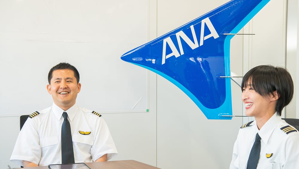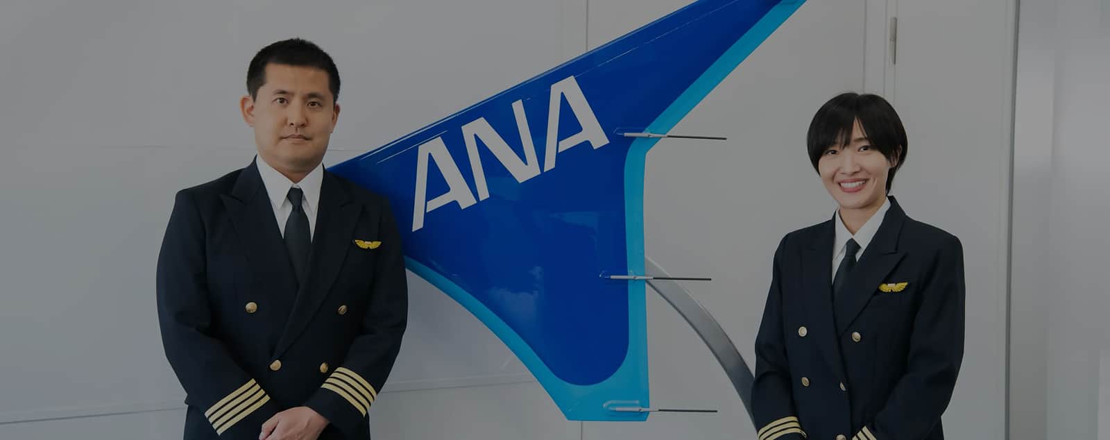 今日はANAの運航乗務職から、島本機長と山野副操縦士の”先輩後輩コンビ”に来ていただきました。お二人からはパイロットを目指したきっかけやANAならではのリアルな現場の雰囲気など、お話ししてもらいます。