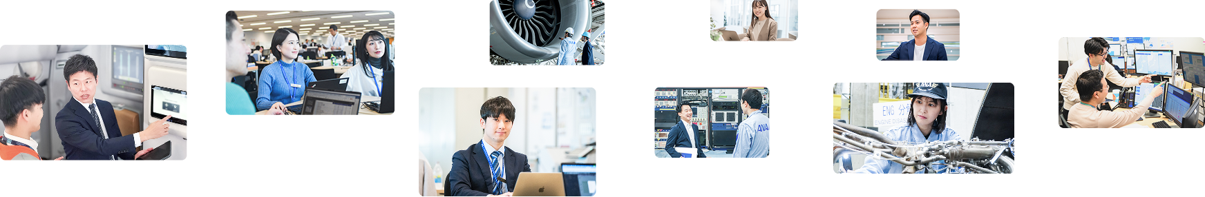 業務分野は幅広く、経営戦略の立案や高品質なオペレーションの実現、航空機メンテナンス・技術方針のマネジメント、お客様視点に寄り添ったサービスの企画、ANAグループのDX戦略やライフバリュー事業の推進など多岐に渡ります。
