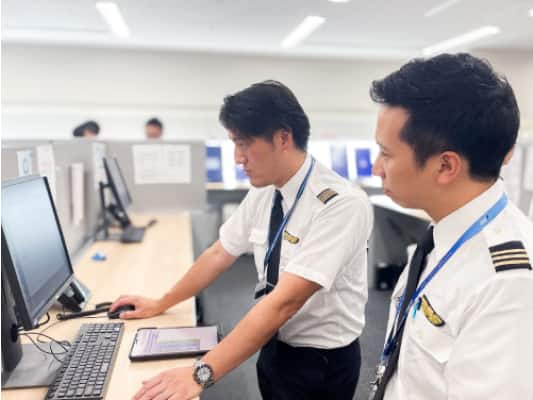 実際のフライト以外の場面においても、パイロットとしての技倆を高めていくために、長期的成長を見守る班長や、訓練のプログラム作成、指導教官などを行います。