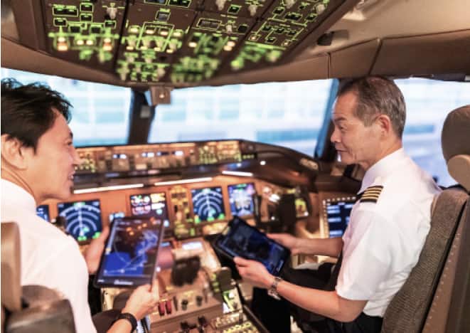 日々の運航を着実に遂行し、地球環境への配慮など、様々な視点をもって大空を飛ぶことが求められます。さらに機長は、フライトの責任者となるため、常に人格、技倆、識見を磨き続けながら、安心と信頼をお客様へ届けています。
