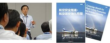 ANAグループの安全理念では、安全を経営の基盤としており、その実現のためには、安全に関する対話や参加型の活動など、職場における航空安全の啓発および活動促進が有効であると考え、各種安全推進活動をグループ全体で実施しています。