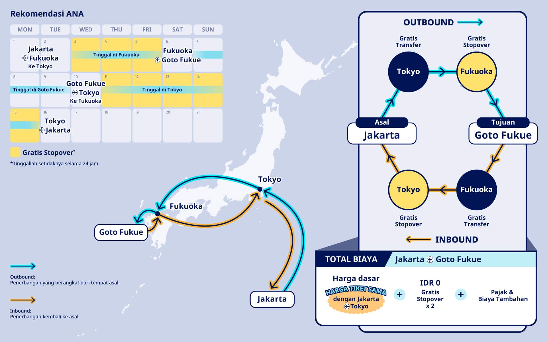 Bergabunglah dengan kami dan jelajahi Jepang seperti yang belum pernah Anda alami sebelumnya—manfaatkan 2 stopover per arah (1 GRATIS dan 1 dikenakan biaya sebesar IDR 1,250,000)*.