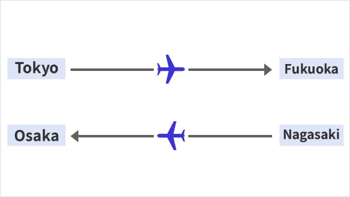 Gli itinerari all'interno del Giappone possono prevedere al massimo 1 trasferimento, sia per il viaggio di andata che per il viaggio di ritorno. Gli itinerari dei voli internazionali possono prevedere fino a 2 trasferimenti, sia per il viaggio di andata che per il viaggio di ritorno. |