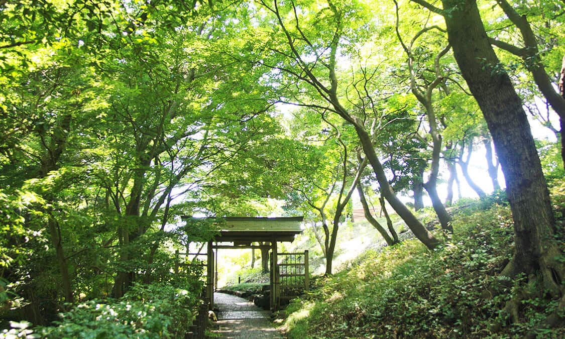 かつては三井財閥の別荘「城山荘」があった場所です。高台からの眺めの良さは「関東の富士見百景」にも指定されています。富士山はもとより、箱根連山、伊豆半島や相模湾、伊豆大島を一望することができます。