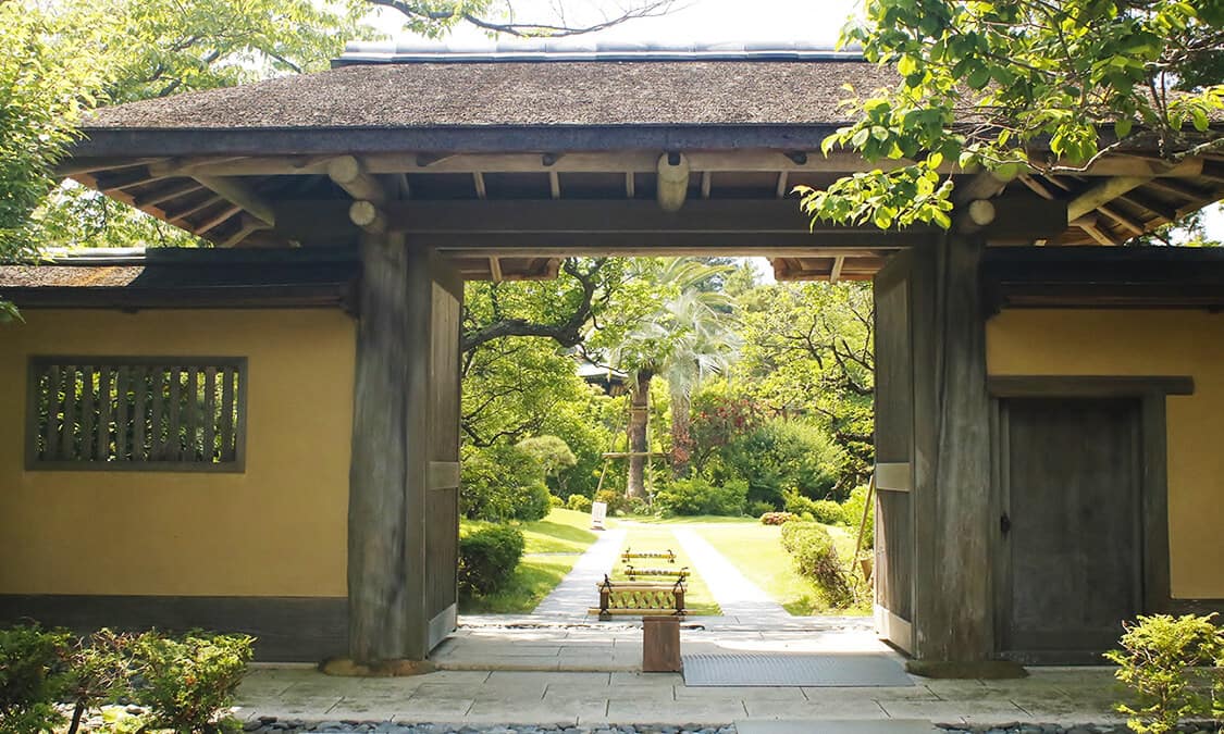 大磯城山公園は、旧三井別邸跡地と旧吉田茂邸跡地を整備して作られました。旧三井別邸地区には日本情緒あふれる茶室や大磯町郷土資料館、旧吉田茂邸地区にはモダニズムを加えた日本庭園があります。高台に上がれば相模湾から伊豆半島、箱根連山や富士山が眺められます。