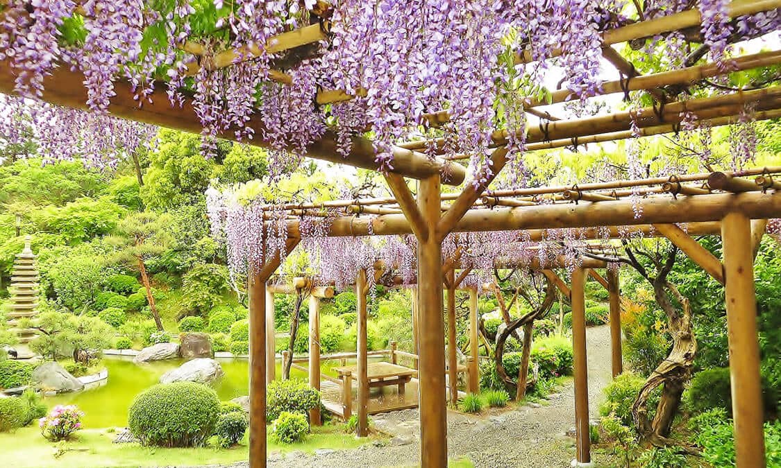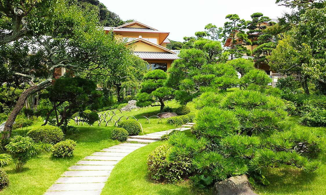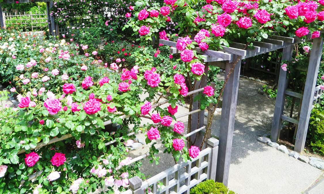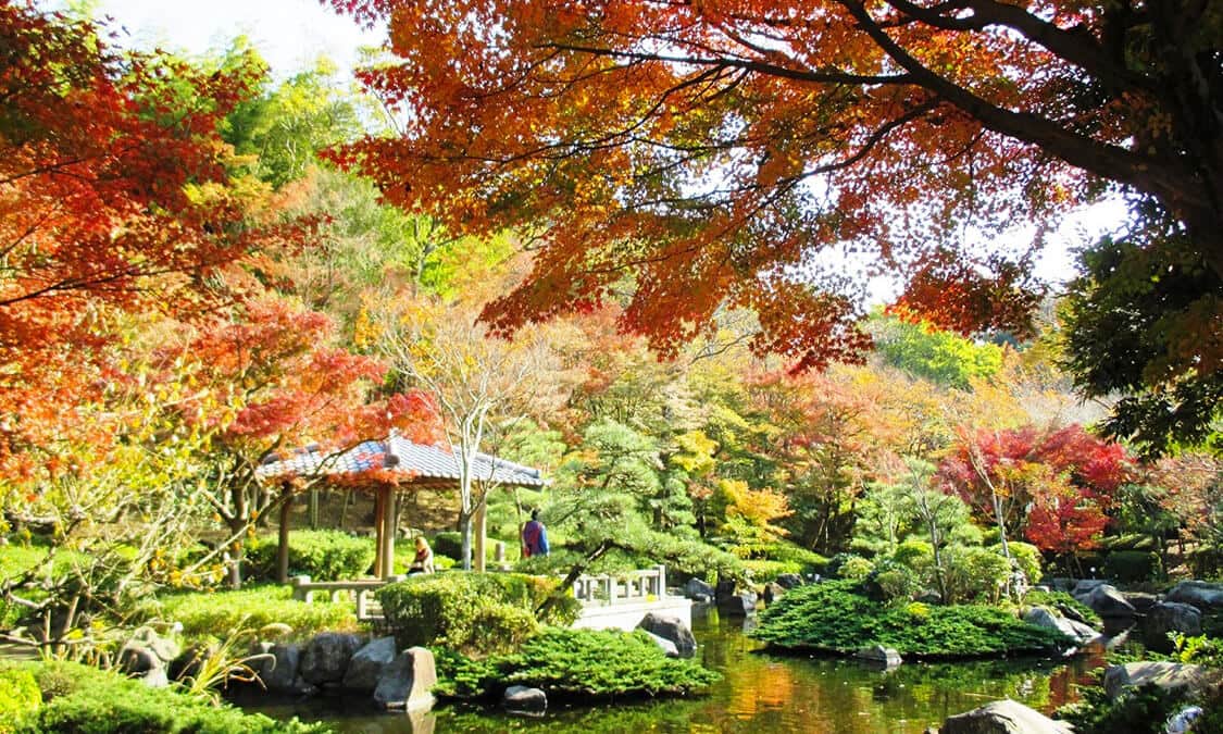 1961年に完成した日本庭園は、和風にモダニズムを加えた日本庭園の先駆けと言われています。バラ園もあり花が多く華やかで、すっきりとシンプルで親しみやすいのが特徴です。