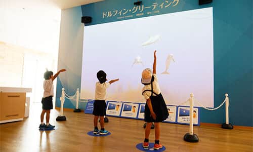 天草は、青い海に囲まれた大小さまざまな島からなる諸島です。天草の中でも一番大きい島、天草下島(あまくさしもしま)の北部にある「道の駅 天草市イルカセンター」は、天草イルカウォッチングの情報ステーション。イルカウォッチングの受付や野生イルカのVR(仮想現実)体験コーナー、海の幸レストラン、特産品販売コーナーもあります。