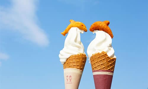 天草ならではの体験といえばこれ!天草市五和町通詞島(いつわまちつうじしま)の沖合には約200頭のミナミハンドウイルカが暮らしています。この一帯は、起伏に富んだ海底と潮流によって、イルカのエサとなる小魚などがたくさんいる豊かな海域。年間を通じて野生のイルカに出会うことができます。イルカウォッチングの船は、道の駅 天草市イルカセンターから出航し、早いときは5~10分の航海でかわいいイルカたちに会えることも。イルカの表情がわかるくらい間近でのウォッチングに大興奮です。