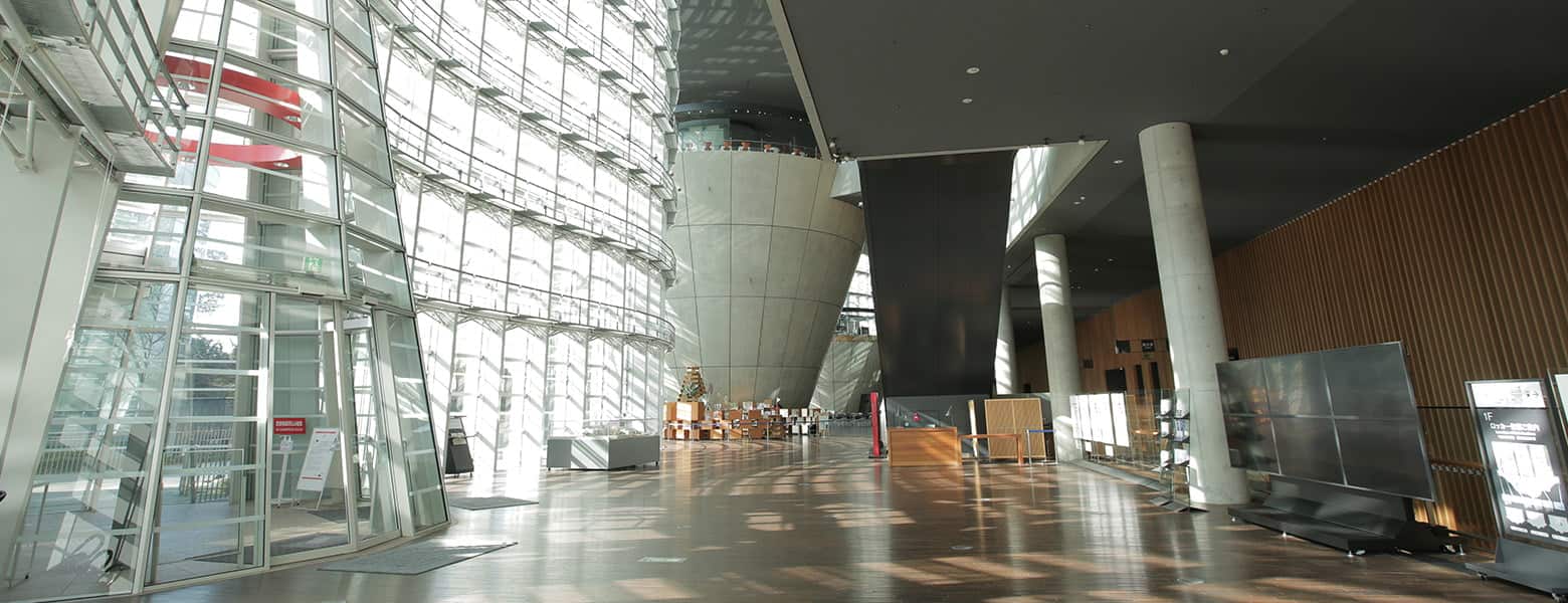 流行の最先端を感じられる東京の繁華街・六本木は、アートの街としても知られています。六本木駅から徒歩でアクセスできる国立新美術館は、波を打つガラスのカーテンのような外観が特徴で、設計者は、「共生」をテーマに掲げ数々の美術館を手がけた建築家・黒川紀章(1934〜2007)。エネルギー消費が少ない床吹出し空調システムや二枚合わせになったガラスのルーバーによる熱対策など環境に配慮し、「建築と自然との共生」を実現した最先端の建築として大きな注目を集める建物です。