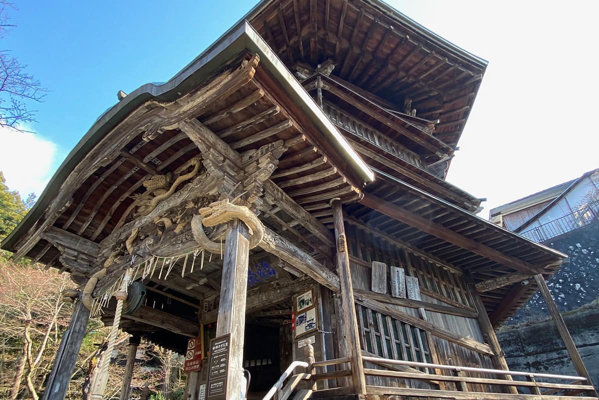 福島県会津若松市の山中にひっそりと佇む会津さざえ堂は、1796年に建てられた高さ16.5mの六角形をしたお堂。精緻な龍の彫刻が施された入り口を持つ木造の外観に目を奪われます。