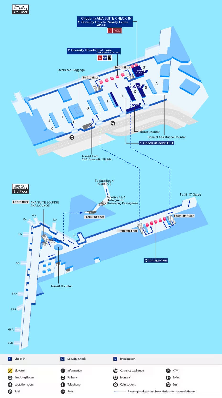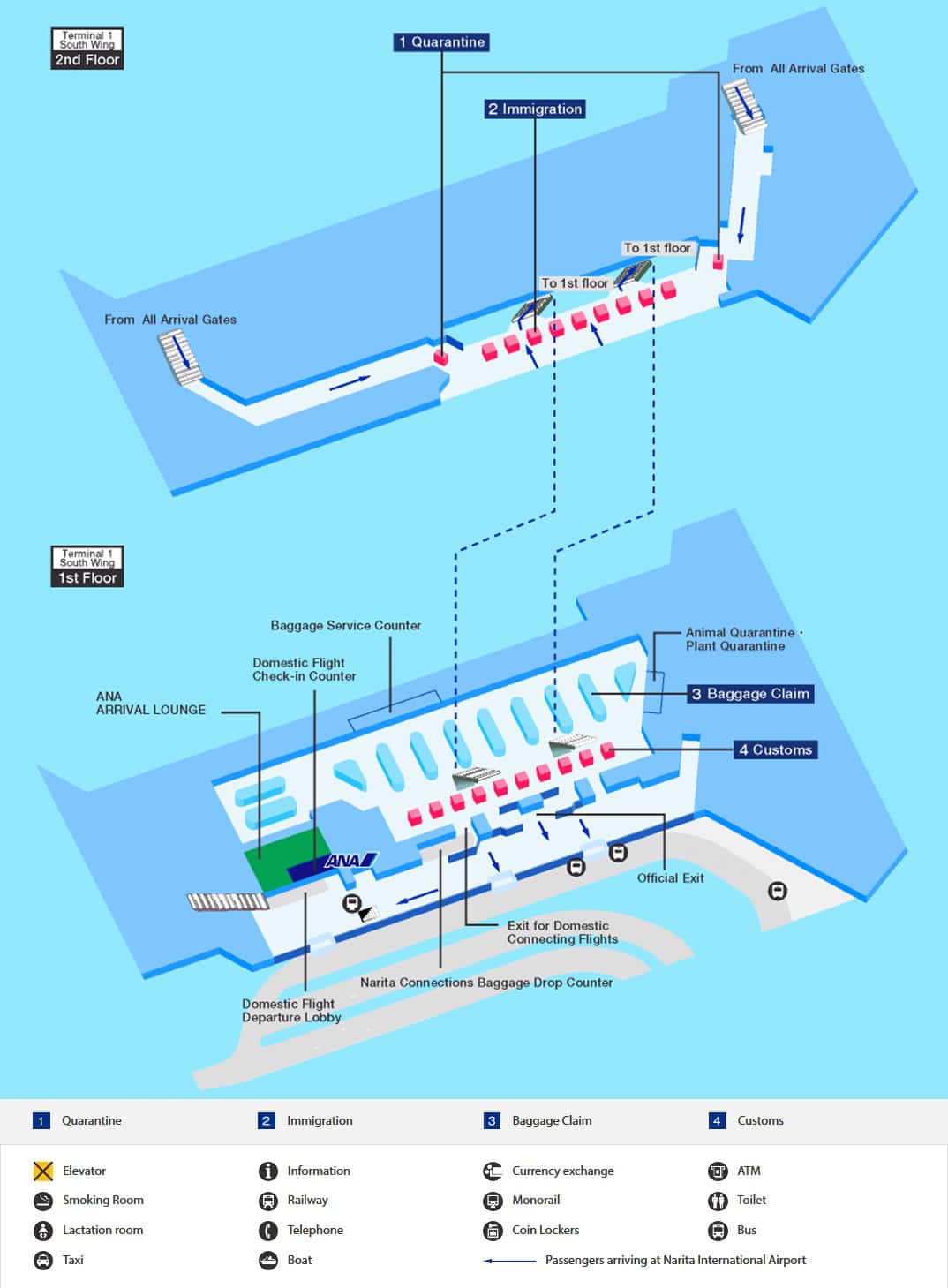 成田国際空港の発着ターミナルマップなど、空港内をご案内します。ご注意: 基本的に、ANAは成田空港第1ターミナル南ウィングのご利用となります。2019年2月以降、一部のANA運航便は第1ターミナル北ウィングに到着する場合もあります。最新情報を空港ウェブサイトの「今日のフライト」のページでご確認ください。