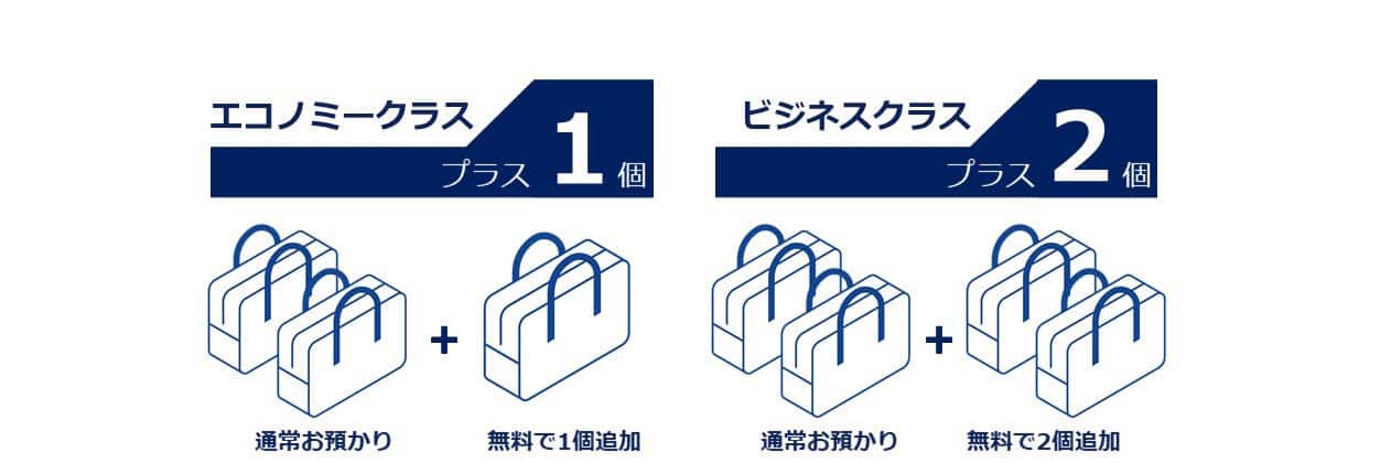 通常の無料手荷物許容量+2個(1個あたり32kg)